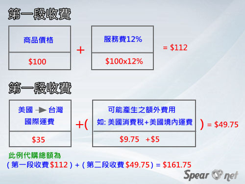 *第二段收費: 美國→台灣國際運費+可能產生的美國商品稅與境內運費或是其他尚未繳清的費用。